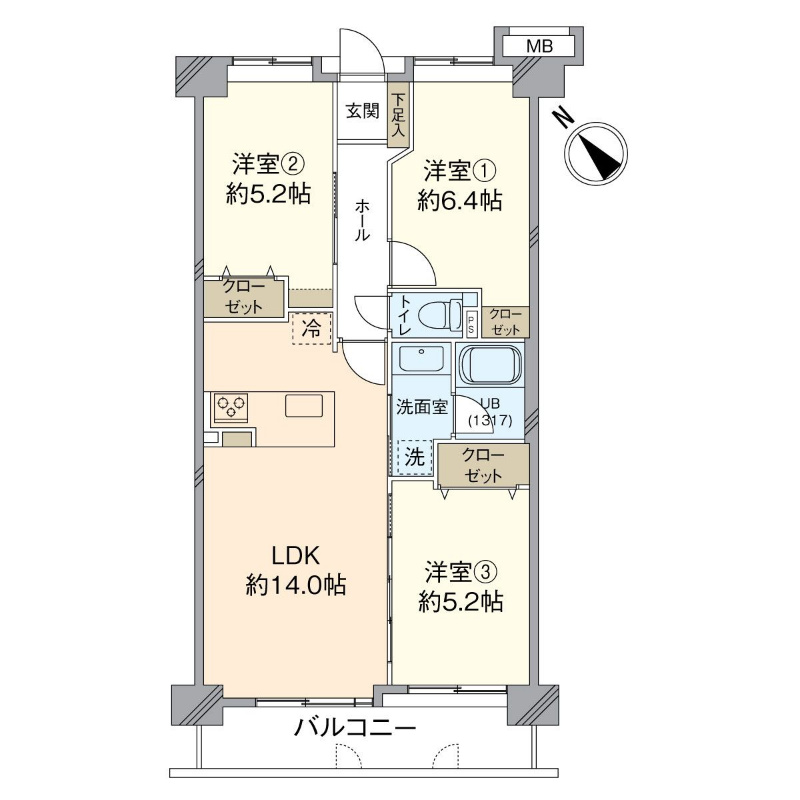 LDK14畳 / 洋6.4畳 / 洋5.2畳 / 洋5.2畳 |