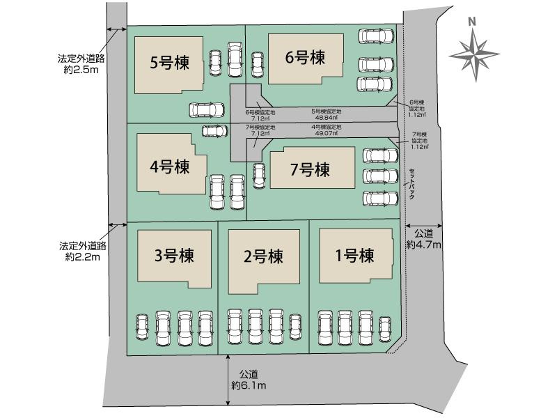 83575006-2弊社HPで高画質な図面をダウンロード可能【協定道路】敷地面積に含む(4号棟:49.07m2、5号棟:48.84m2、6号棟:7.12m2・1.12m2、7号棟:7.12m2・1.12m2) |