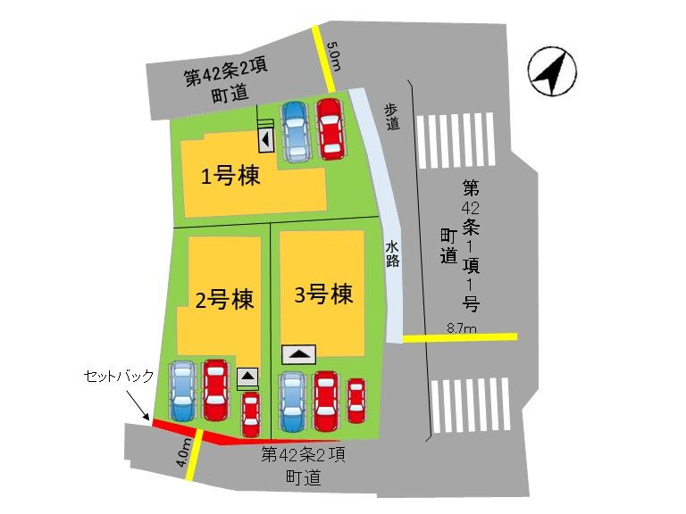 北東 幅8.7m 公道 / 南 幅4m 公道 |